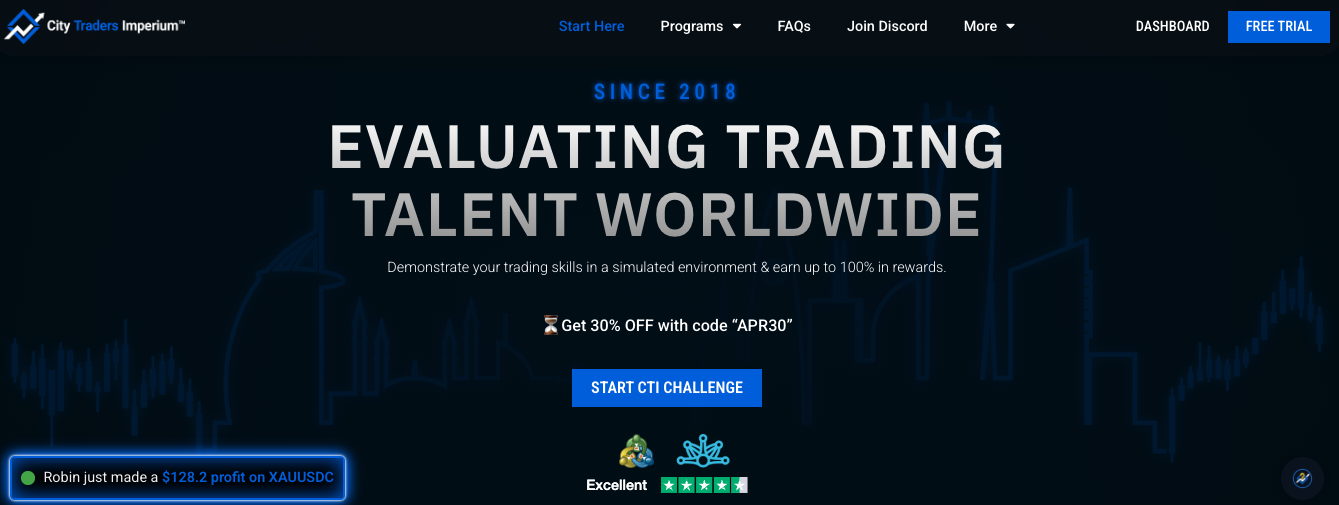 City Traders Imperium has been around since 2018, which gives it more operational history than most firms on this list. For swing traders, the important parts are straightforward: overnight holding, weekend holding, and news trading are all allowed with no restrictions. There are no forced closures at the end of the week, so your multi-day setups stay intact.